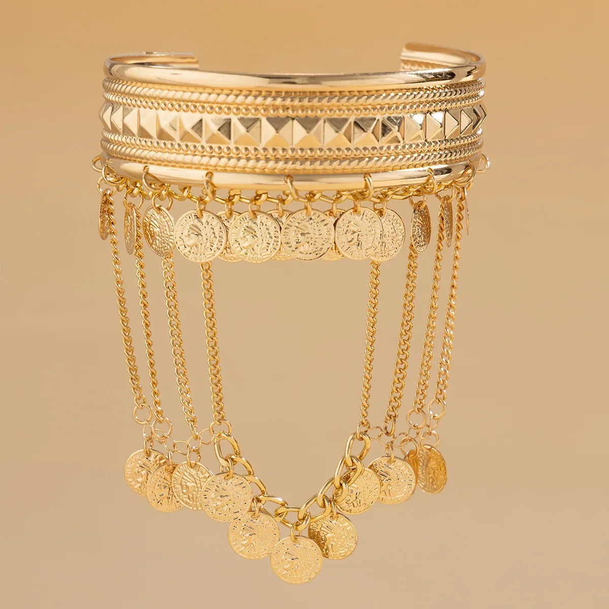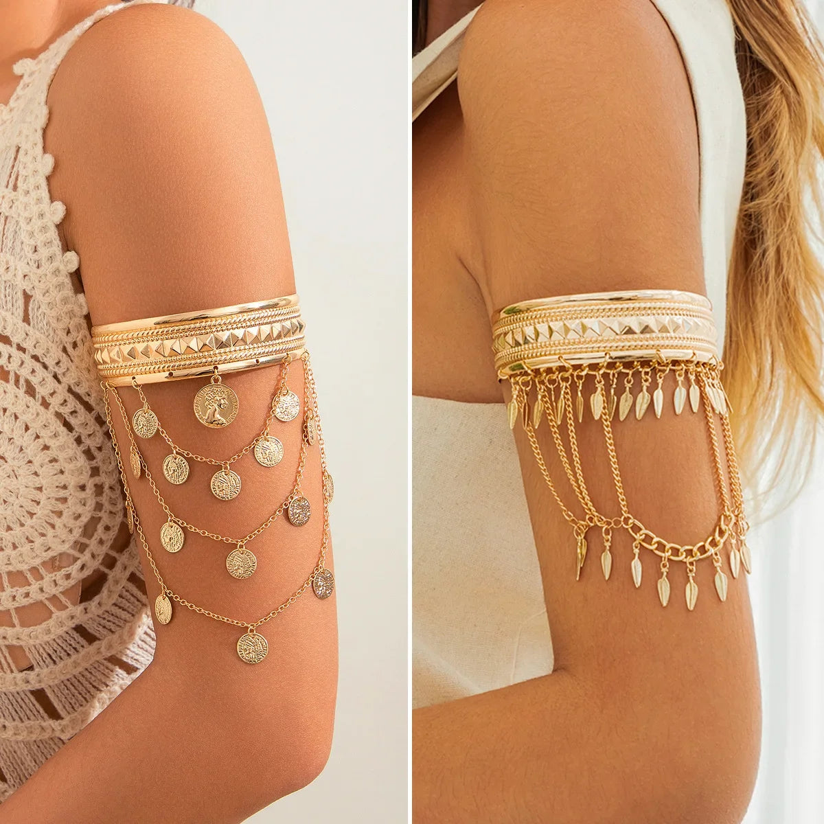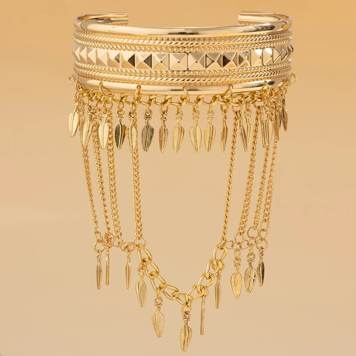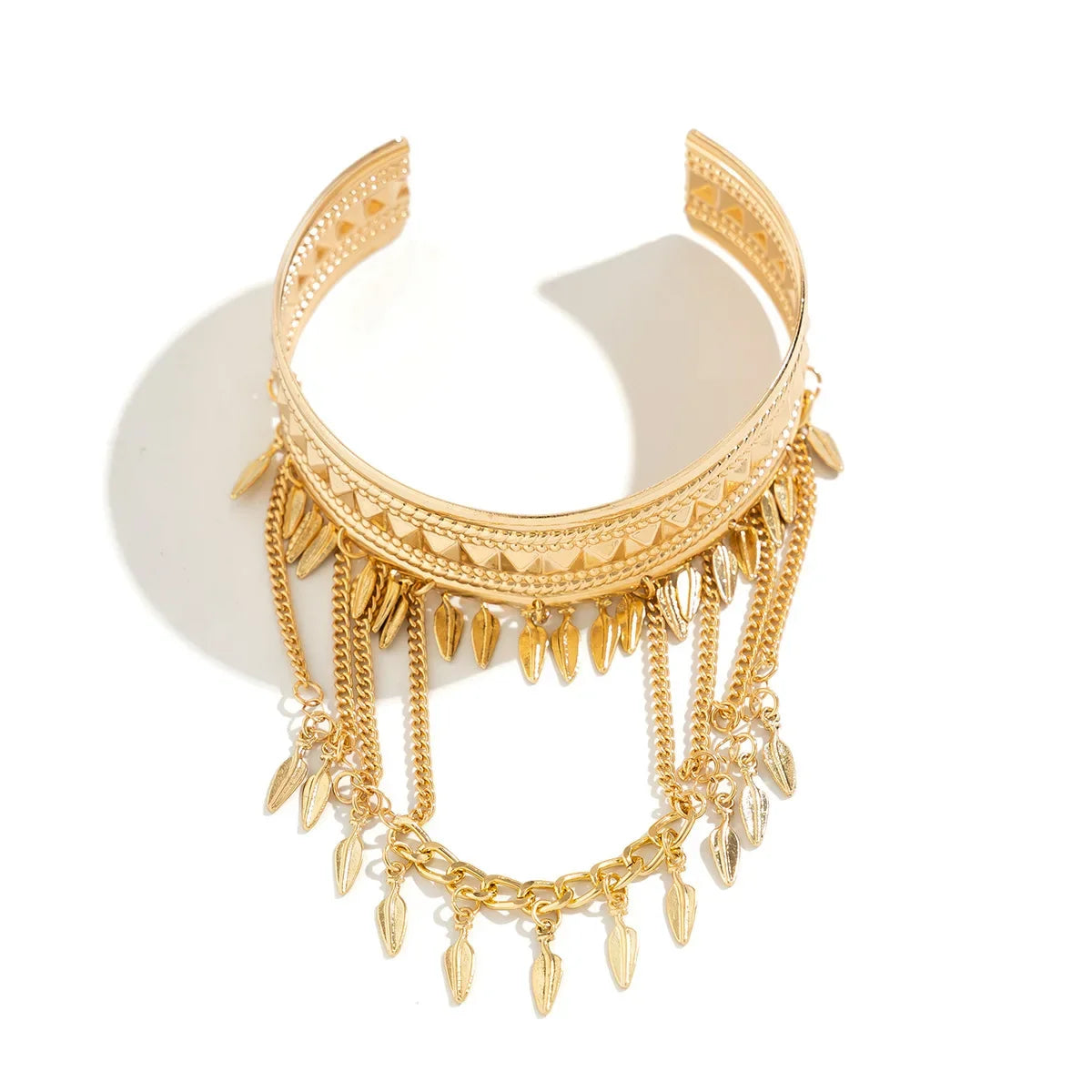 Altın Zincir Püsküllü Üst Kol Kelepçe Bilezik